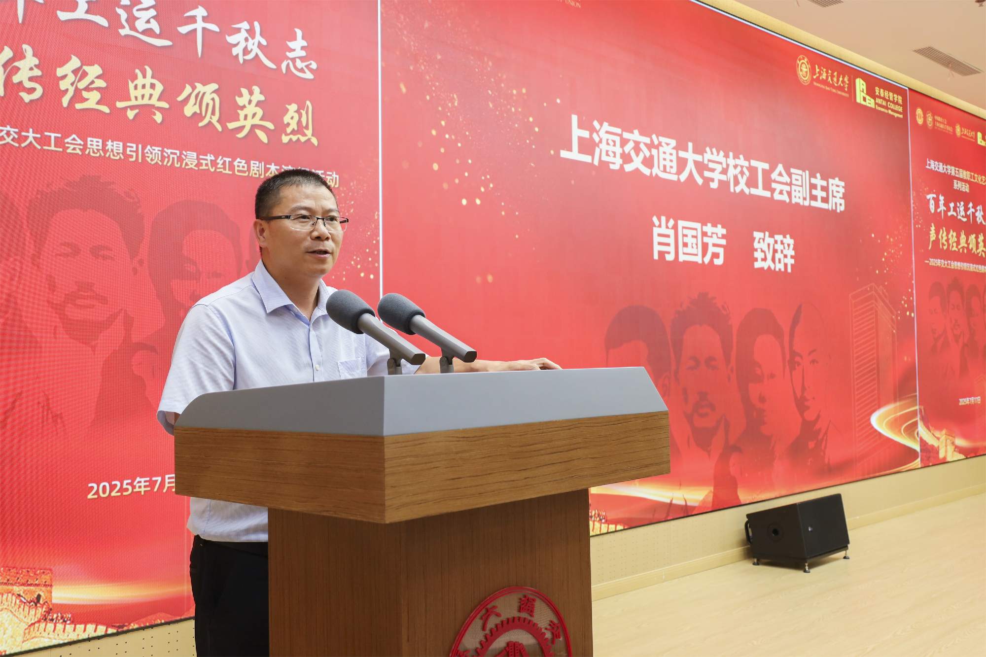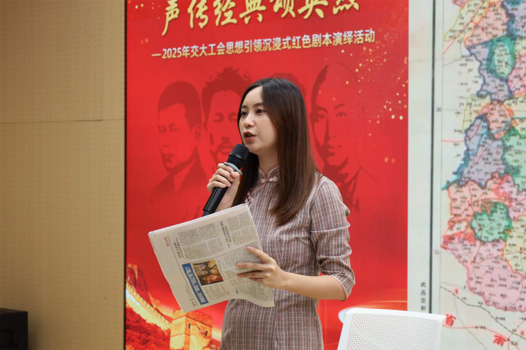 肖国芳在演绎结束后向参与演出和筹备工作的教职工表示感谢,并总结道,方志敏同志在狱中写下的《可爱的中国》,字字饱含对祖国的热爱与对未来的憧憬。他的精神跨越时空,依然激励着我们不忘初心、砥砺前行。此次 “百年工运千秋志,声传经典颂英烈” 沉浸式红色剧本演绎活动,用教职工喜闻乐见的形式破解思政教育 “入耳入脑入心” 难题,以参与汇聚力量,通过广泛动员形成 “人人都是教育者、人人都是受教育者” 的良好氛围,是一次成功的思政教育创新实践。它不仅让教职工在参与和观摩中传承红色基因、汲取精神力量,更展现了上海交大工会在思想引领工作中的担当与作为。