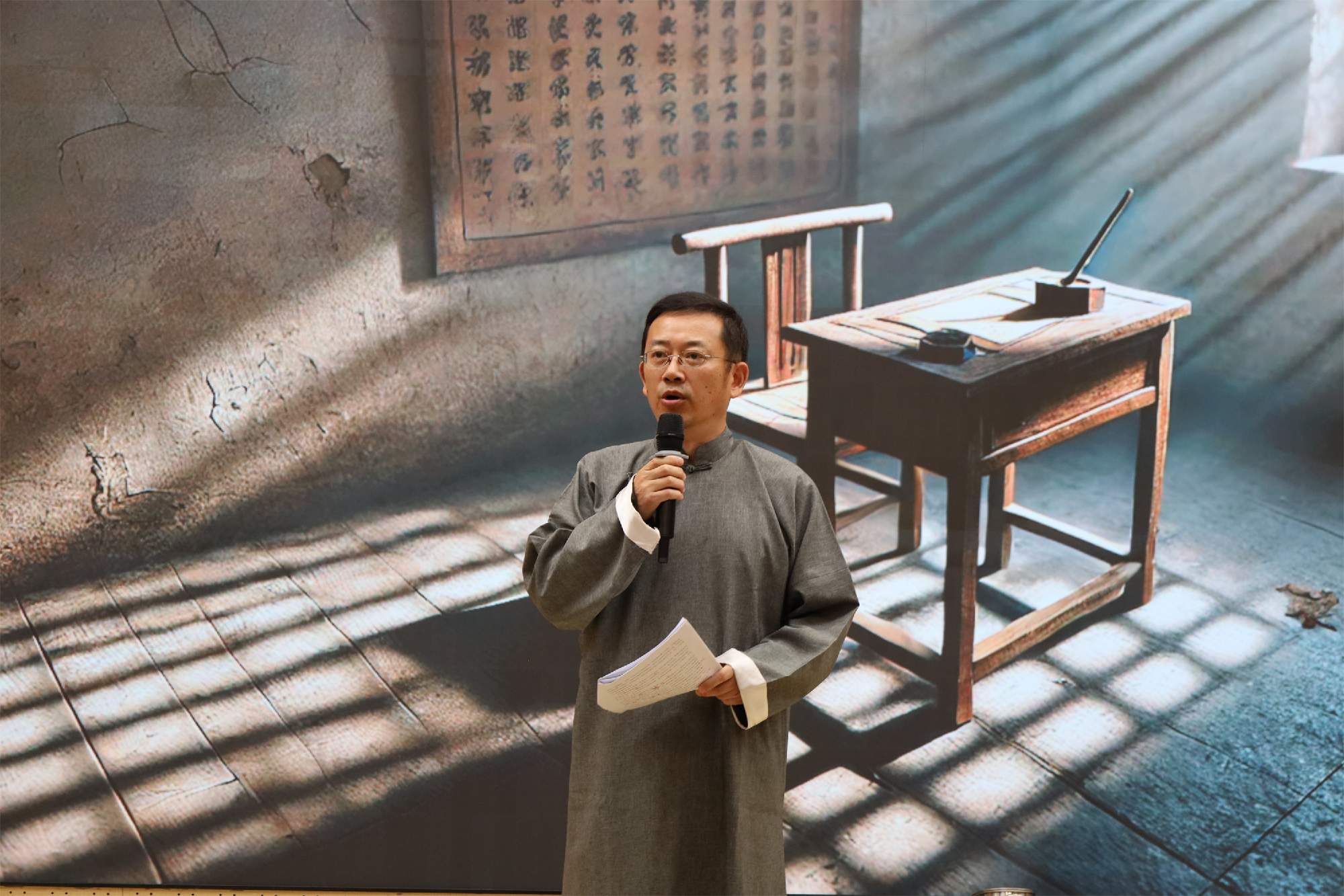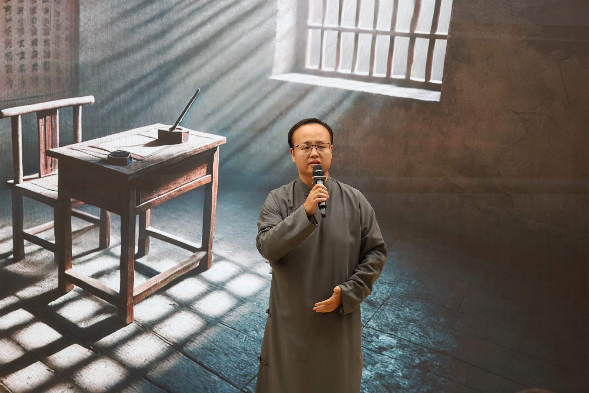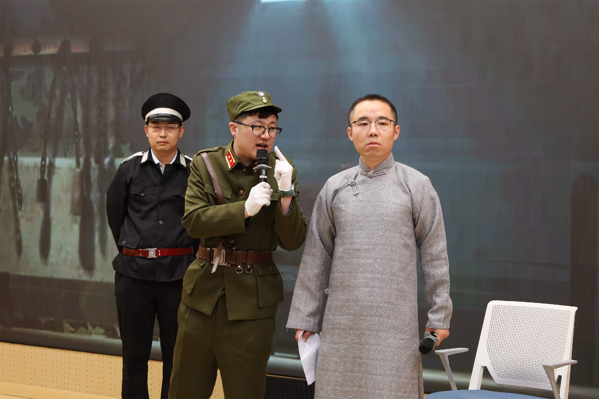 此次活动以 “《您笔尖的春天正在绽放》—— 与1935年方志敏的三次对话”为核心剧目,围绕方志敏烈士的生平事迹,通过剧本演绎、跨时空书信对话等创新形式,使现场教职工在沉浸式体验中重温革命先烈的坚定信仰与赤子情怀。50多位安泰教职工经过多次排练,重现了方志敏烈士在狱中撰写《可爱的中国》时的动人场景。有六位教工分别饰演方志敏,虽分工演绎不同时期的角色,却以昂首挺胸的身姿、铿锵有力的话语,共同演绎了人物 “对祖国赤诚、对信仰坚定” 的凛然正气;方志敏妻子的扮演者以坚韧却饱含深情的语气演绎 “为革命生,愿为革命死” 的誓言,与方志敏的扮演者形成隔空呼应,展现出革命伴侣 “生死与共” 的深情;反派角色同样精彩,饰演国民党监狱长钱兴的两位教工,他们在审讯场景中将反派角色 “用软硬兼施手段摧毁革命者意志” 的企图和“阴险狡诈、虚伪功利” 的人物特点演绎地淋漓尽致。这种沉浸式演绎打破了传统思政教育的形式边界,让观众在艺术熏陶中直观感受革命先烈的信仰力量。