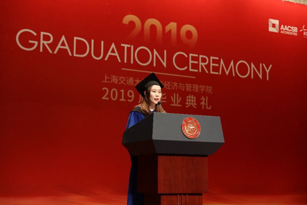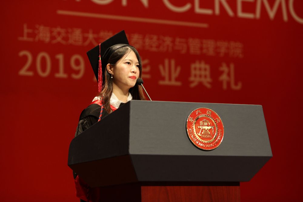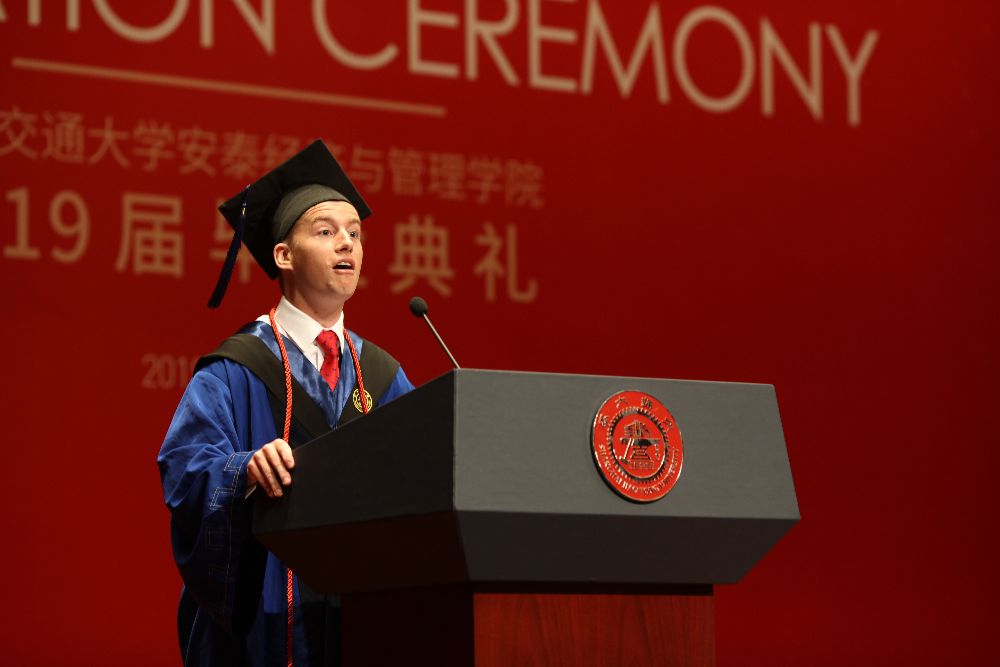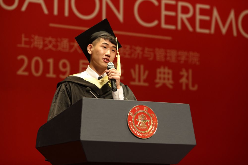 Later, four excellent student representatives from the undergraduate, master and doctoral programs shared their gratitude and nostalgia for their Alma mater and their expectations for the future. Shiting Yang, a master in Finance, said that the elite education of Antai had given students a broad vision of China and the world, the character of combining knowledge with practice, and the mind of helping the needed. Students should strive to be leaders and promoters of the social trends and developments, and defenders of the bottom line and conscience of the society. The doctoral representative Shan Wang shared her experiences after 6 years in Antai to study for a successive master-doctoral degree. She reminded the graduating students to remain true to their original aspirations and learn endlessly. Olivier Stamm, a MIB student from Switzerland, looked back on passing the two years. He said that “as we came together from different worlds two years ago, today we yet again part to new shores - but something has changed. For now and forever, we are all part of the MIB family, act as permanent representatives of the Antai College of Economics and Management  and serve as proud ambassadors of SJTU.”