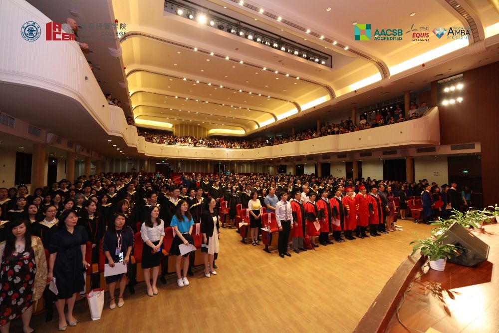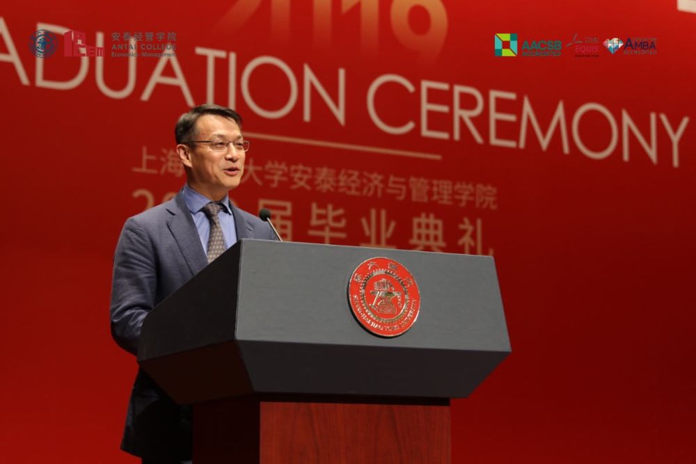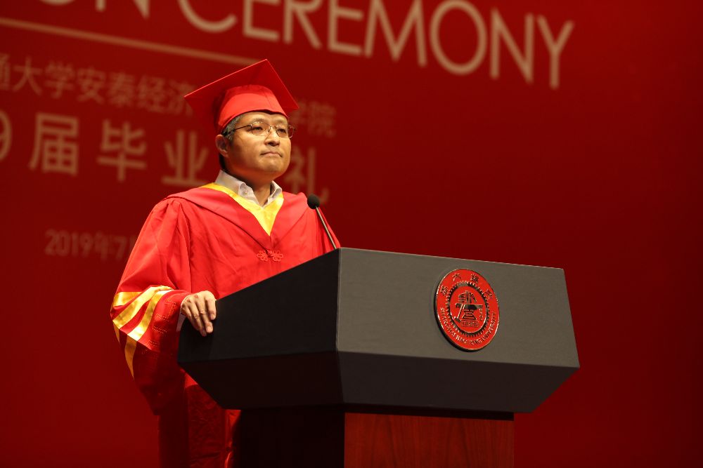 On the afternoon of July 7, 2019, Antai College of Economics and Management held a grand graduation ceremony for 2019 undergraduate, master and doctoral students and conferred academic degrees on them in Wenzhi Hall on Xuhui Campus. Dean of Antai College Fangruo Chen, Party Committee Secretary Jie Yang, Associate Dean Shaoxuan Liu, Deputy Party Committee Secretary Donghong Zhang, Chairman of the Council of Professors Chongfeng Wu, Director of the MIB (Master of International Business) Program Lin Lu, Director of Business Management Undergraduate Program Xingshan Zheng, famous alumni representatives, teachers, 2019 graduates and some of their parents attended the ceremony. The graduation ceremony was presided over by Associate Dean Runtian Jing.