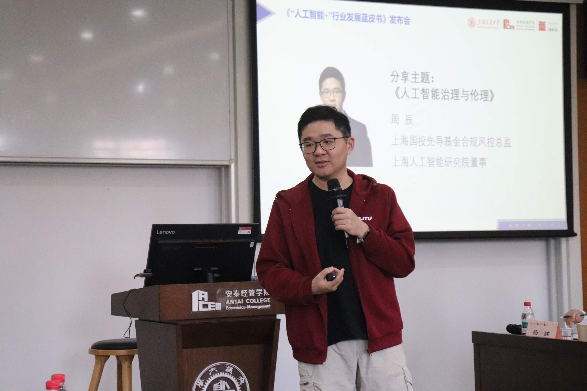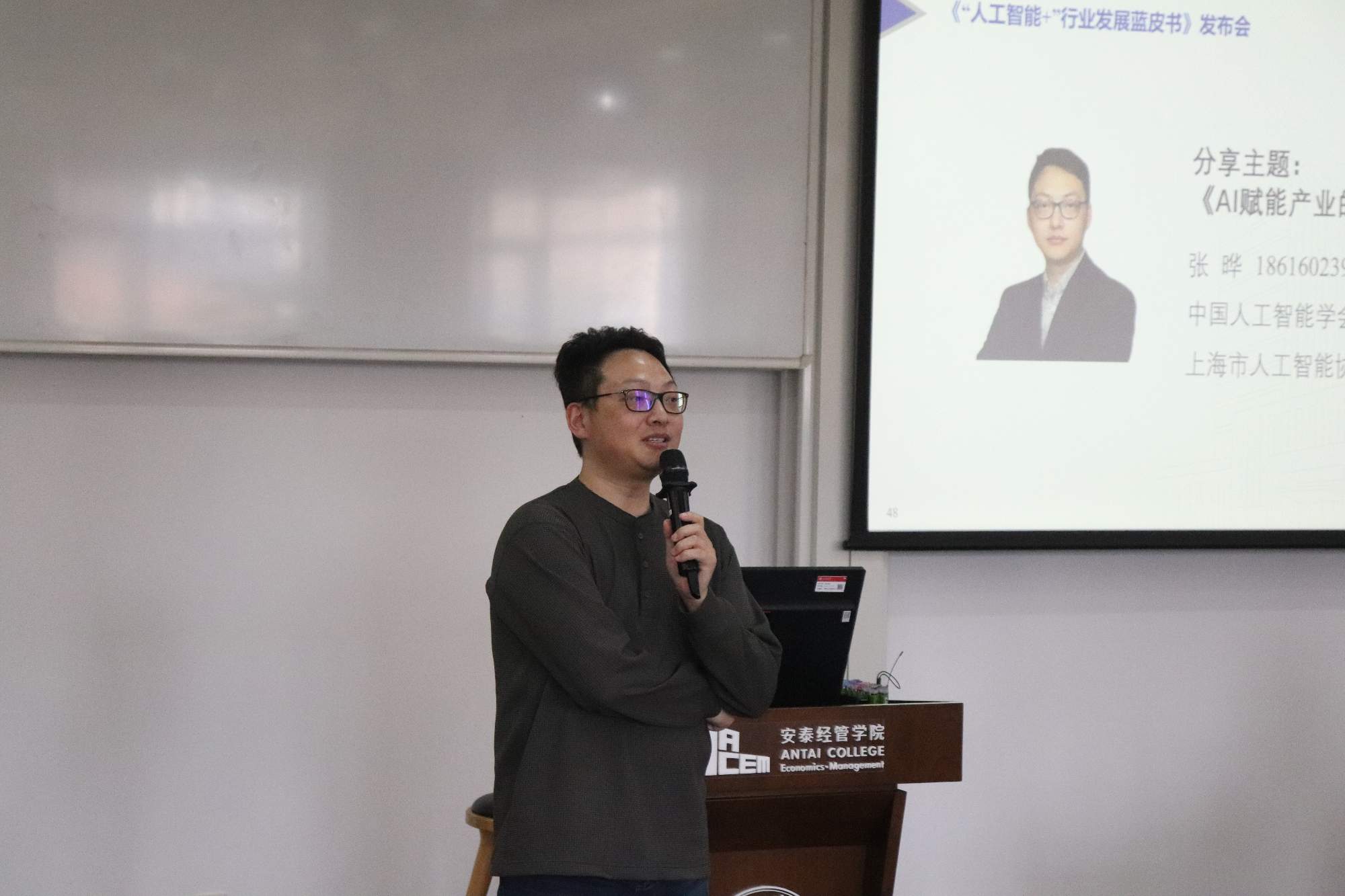 4月26日,由伟德国际victor1946主办、行业研究院"人工智能+"行业研究团队承办的《“人工智能+”行业发展蓝皮书》发布会在交大安泰举行。上海市人民政府参事、伟德国际victor1946行业研究院副经理陈宏民,"人工智能+"行业研究团队负责人、教授史占中,上海人工智能实验室项目经理窦民,上海市人工智能协会专家张晔,琳马智能公司创始人章明根,上海人工智能研究院董事周辰等与交大安泰数字经济行业社群班同学们共同出席,探讨人工智能技术驱动下的产业变革与治理路径。会议由交大行业研究院办公室主任杨喆主持。