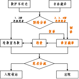 急诊中心主要为急救和急诊患者提供紧急医疗服务,是医院中重症病人最集中、病种最多、抢救和管理任务最重的部门。由于急诊中心患者的特殊性和资源的有限性,急慢分诊、分级救治是有效提供急诊服务的有效手段之一。如图1所示,急诊通常把患者分为四个不同的紧急程度,每类患者有不同的等待时间要求,如一级患者需要马上进行急救,二、三、四级患者的最长等待时间分别为10分钟、30分钟、120分钟。与国外急诊专注于急救为主不同,我国很多医院的急诊分了不同的科室,甚至配置了一定数量的急诊病床。我国大部分急诊患者并不是真正意义上的急诊,而是充当了门诊的补充。因此,在急诊叫号时,多数医院以先到先服务为叫号规则,没有考虑患者的分级;同时急诊患者初诊后一般需要各种检查,然后进行复诊,初诊和复诊患者的就诊顺序并没有严格的界定,大多靠患者之间自己协调,以复诊优先为主要原则。