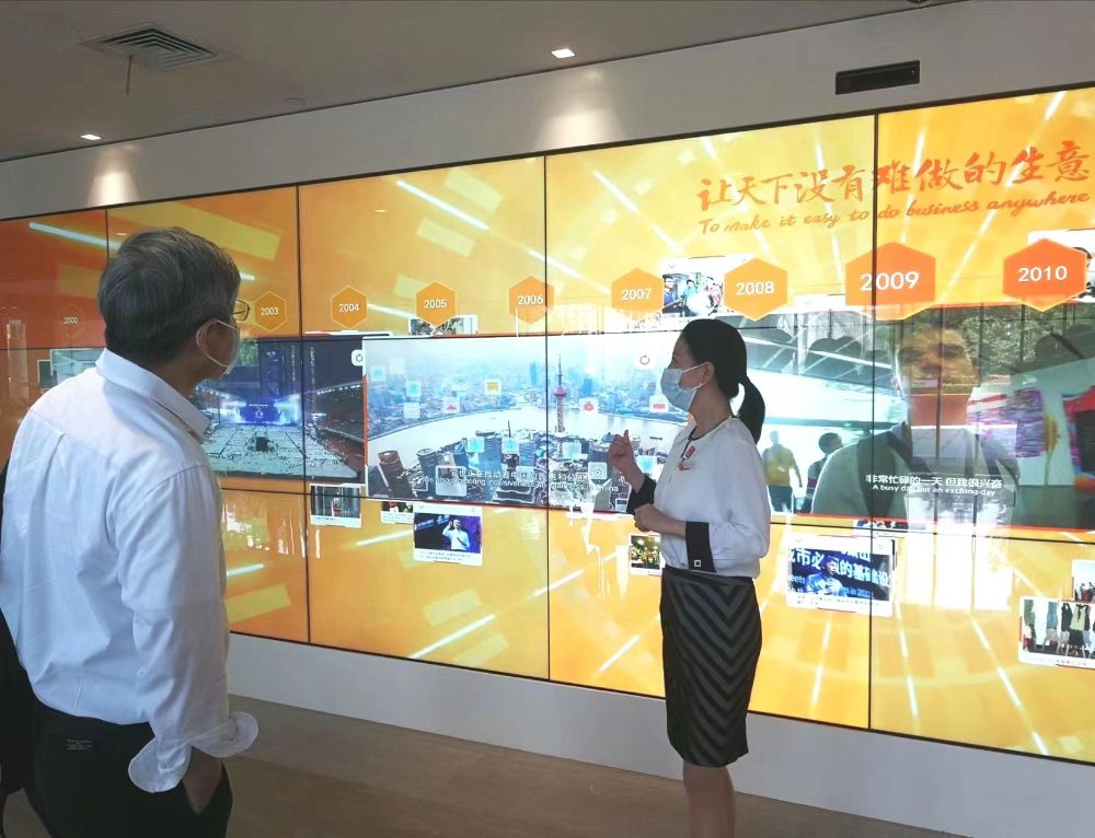 首先,陈经理一行听了阿里巴巴的企业文化介绍。其中,每年的5月10日被定为“阿里日”,这一天公司都会有庆祝活动。此外,阿里把每一次的重要事件视为一场“战役”,并设计一件战袍来调动员工们的积极性和参与感。一整面“战袍墙”让人印象深刻。