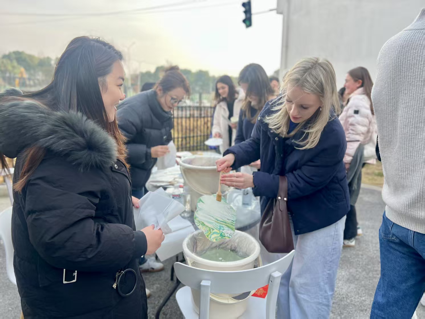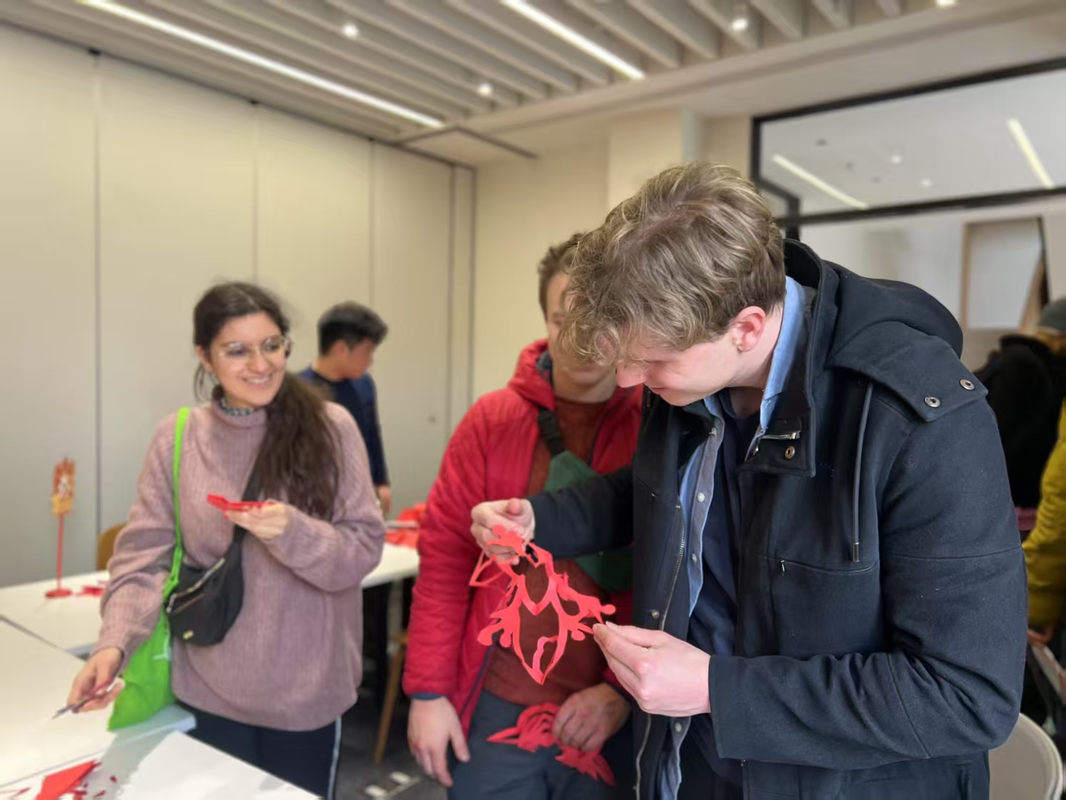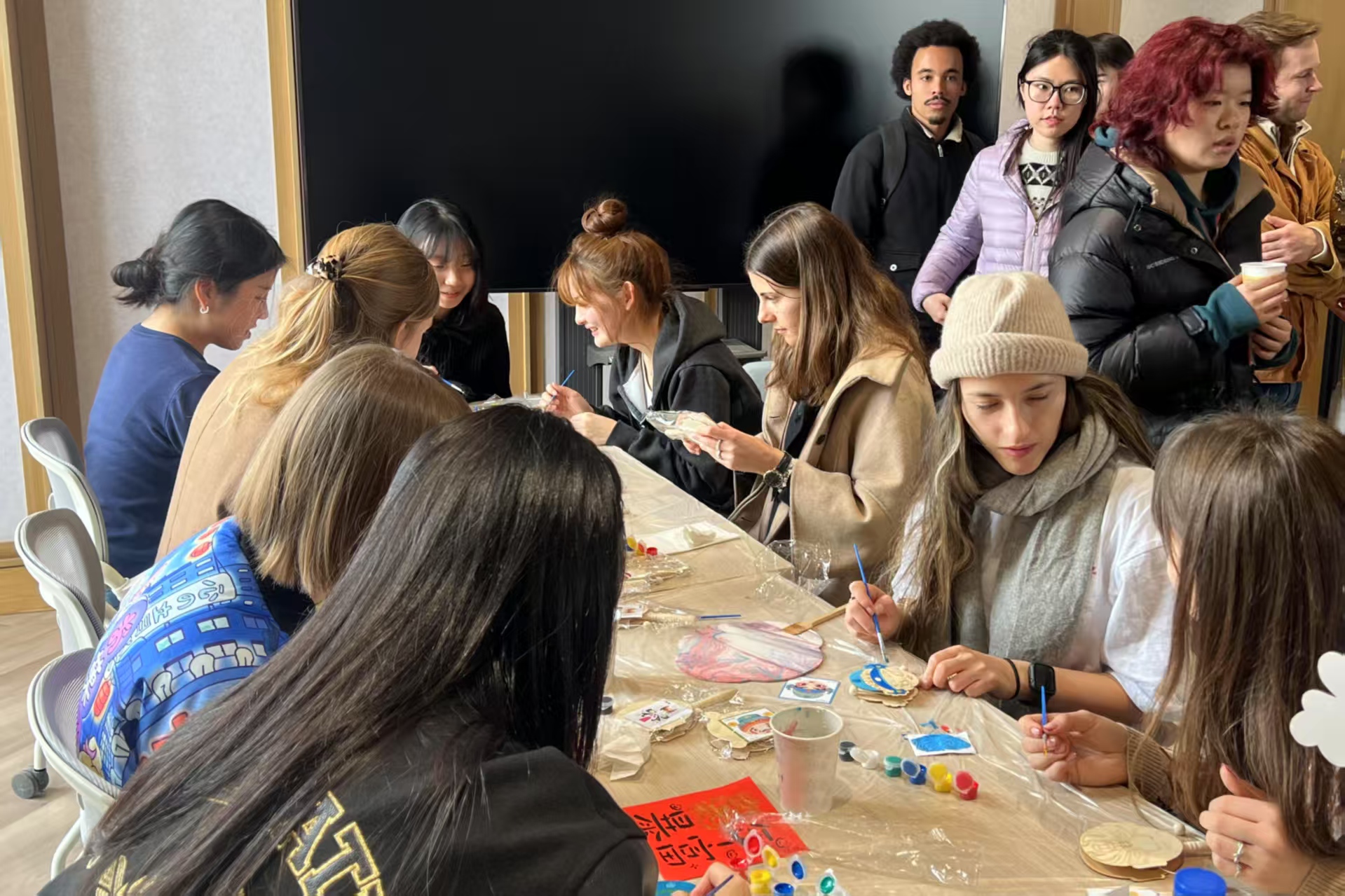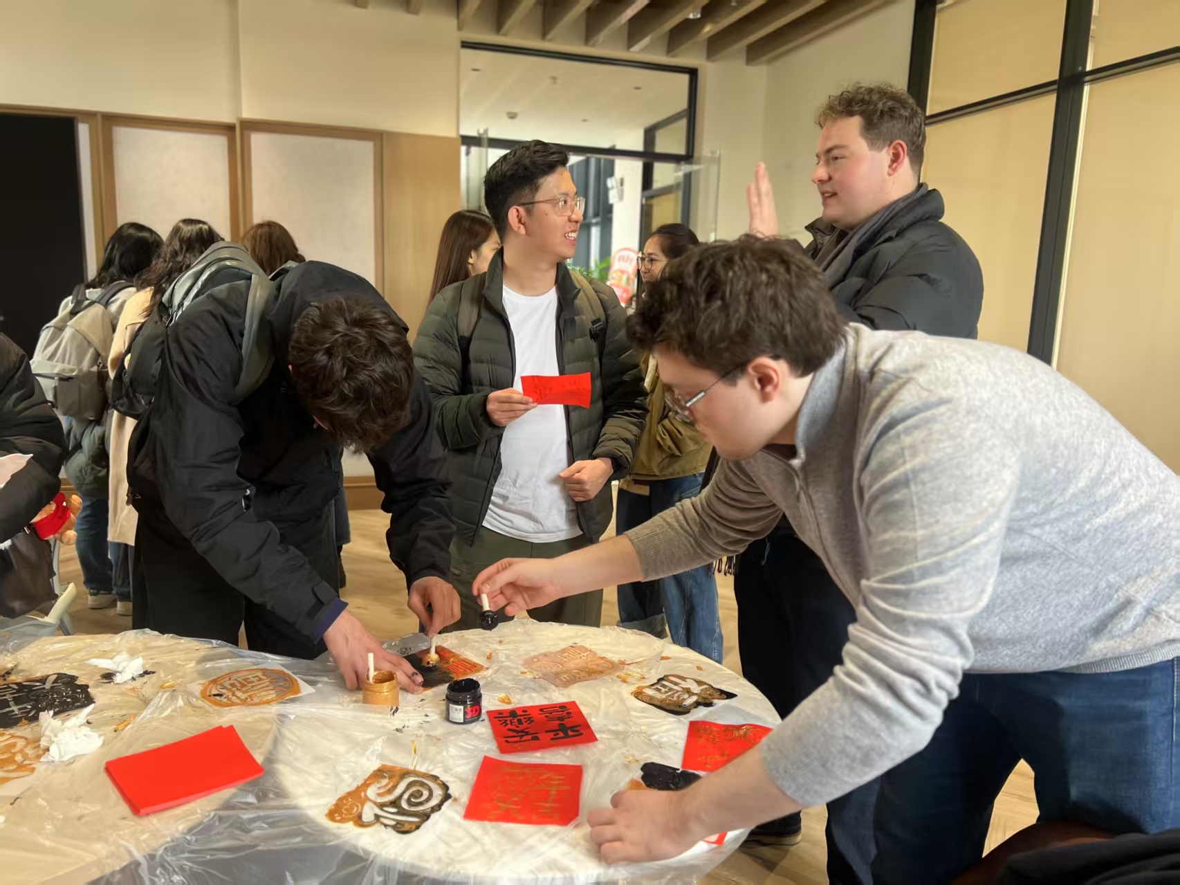 下午,安泰交换生们乘坐大巴,集体前往闵行校区东中院参加由校国际处职工发展中心、职工服务中心协同举办的迎新说明会,详细了解住宿、保险和员工社团活动等信息。随后,新生们前往东晖园参加“交春通福,喜迎新岁”中国文化体验活动。活动中,交换生们体验了投壶、汉服、书法、香囊制作、灯笼制作、剪纸、拓印、漆扇等各类传统文化活动,深刻感受了中国文化的魅力。