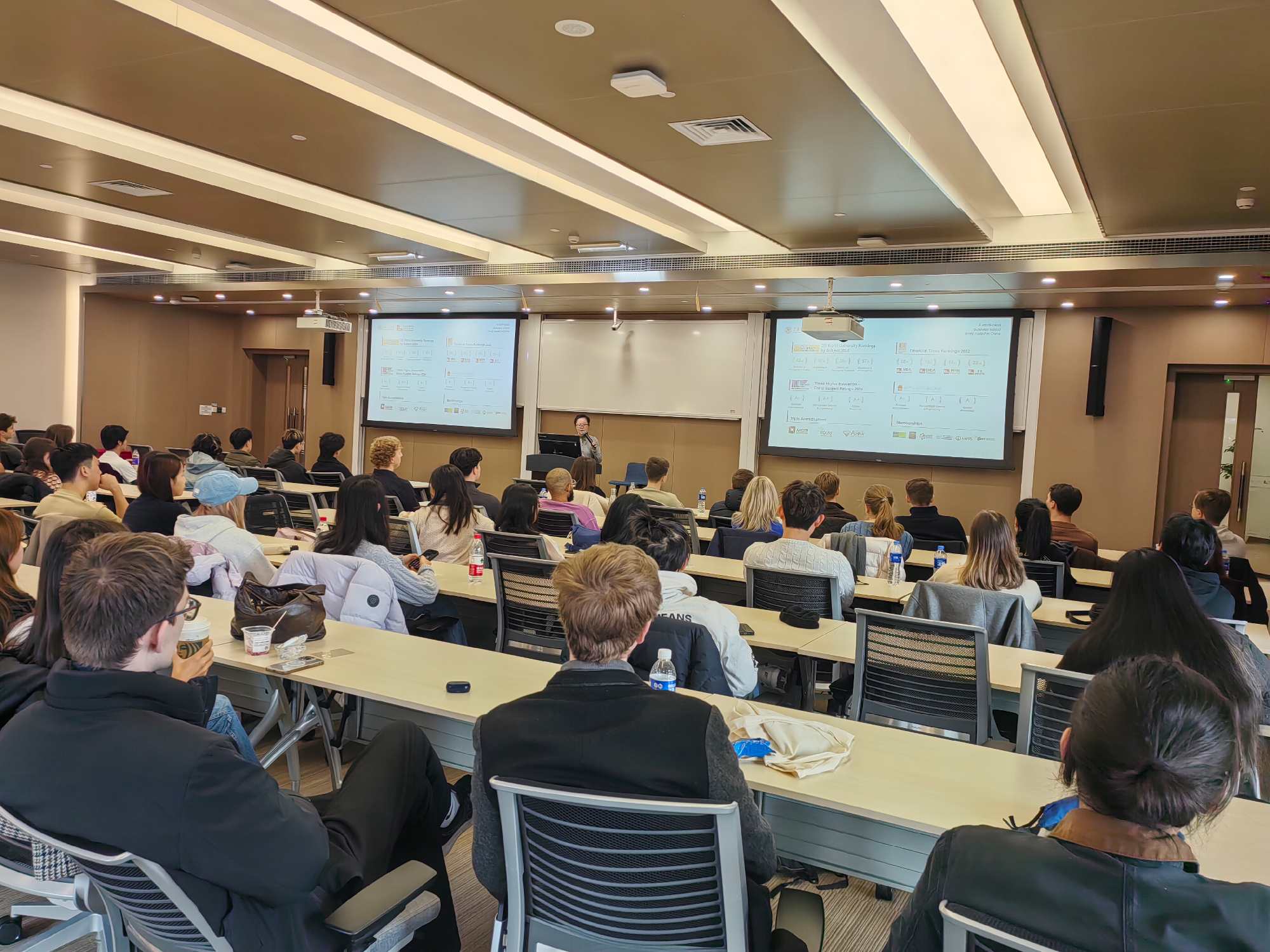 上午,公司迎新活动于徐汇校区包兆龙图书馆B201教室举行。来自安泰国际合作与交流办公室的林懿副主任向所有交换生表示欢迎,并介绍了公司近况。随后,教务办马霖汐老师向新生们介绍了选课、校园生活等重要信息,同时邀请了三位交换生代表分享在校生活和学习经验,为新生们提供了宝贵的经验。