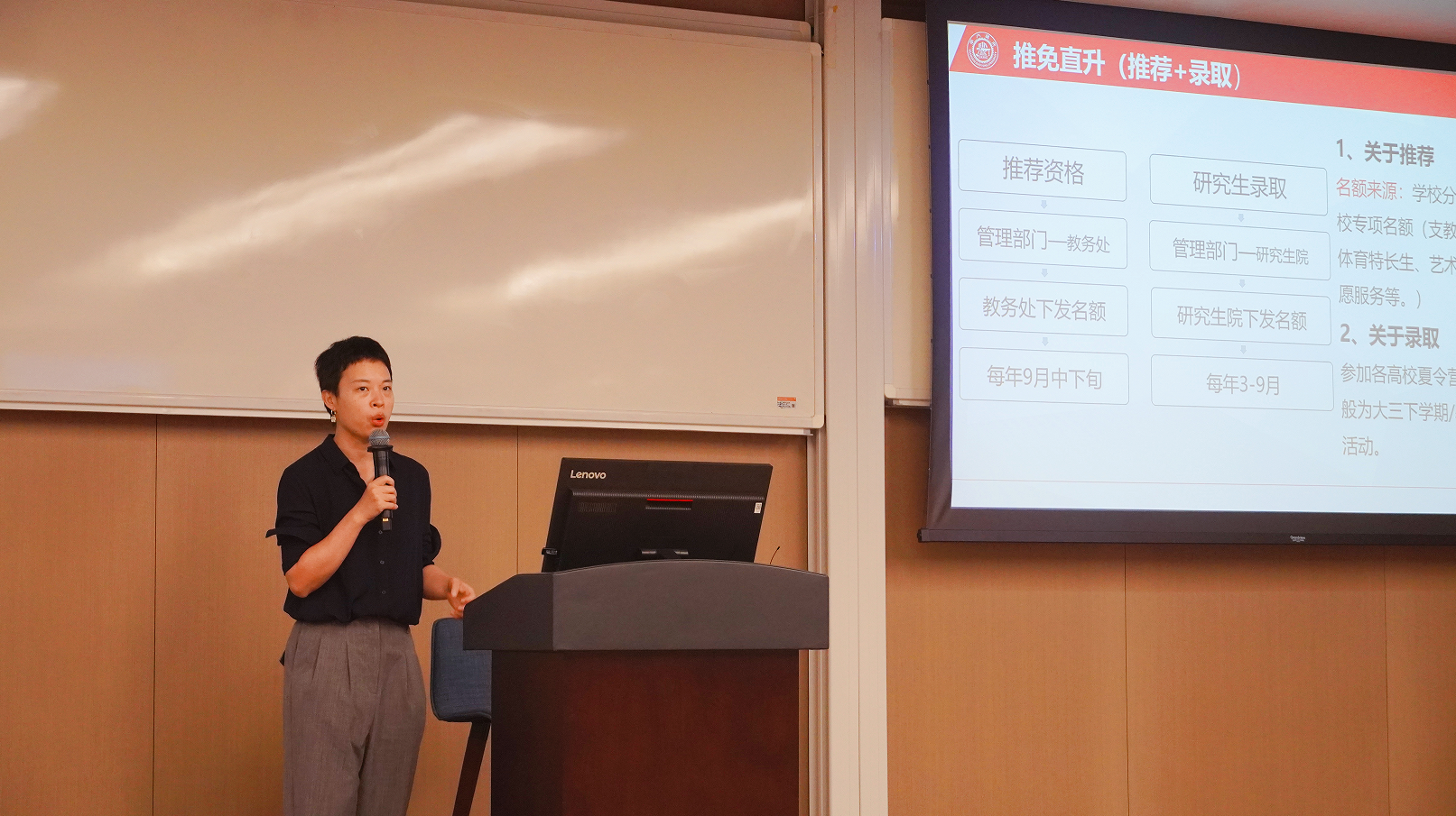 教务办的刘霞老师详细介绍了公司的历史沿革、团队建设、团队队伍和人才培养等概况,并就推免、统考的招生计划和政策进行详细地解读,为同学们的未来发展路径提供了清晰的指引。