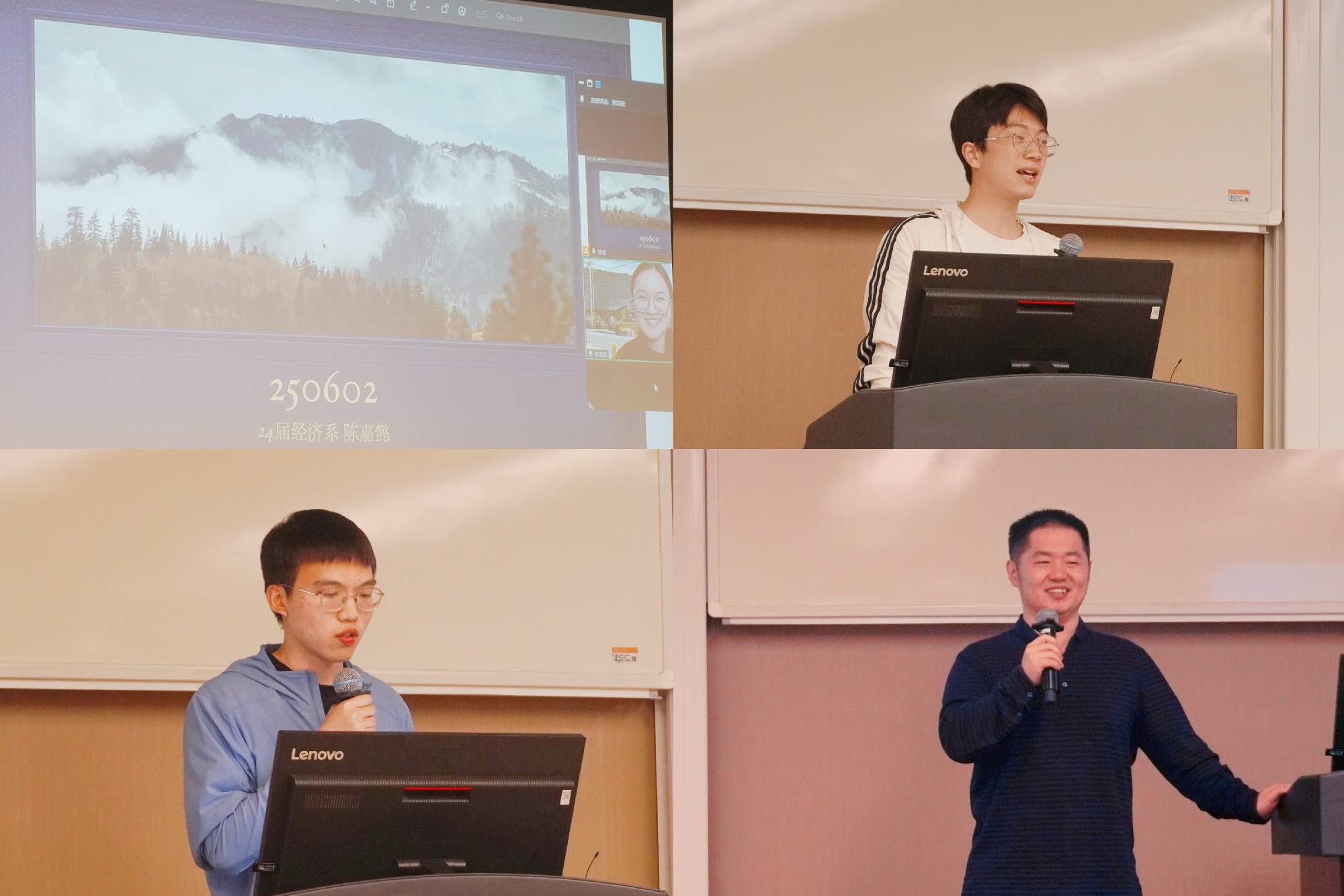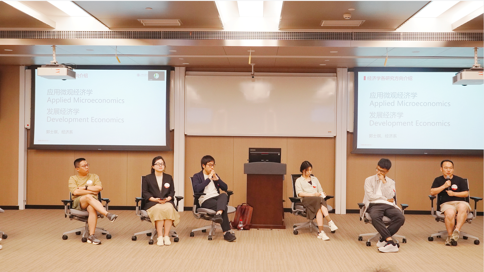 在研究方向分享环节中,经济系的欧声亮、郭士祺、Yuta Suzuki、薛沁舒、Lim Xi Zhi等老师分别介绍了各自的研究领域,涵盖宏观经济学、应用微观经济学、发展经济学、空间经济学、城市与区域经济学、产业组织理论及实证研究、微观经济学理论、行为经济学和实验经济学等多个方向。老师们不仅讲解了不同研究方向所重视的核心能力,更着重分享了自己选择并热爱该领域的初心与感悟。