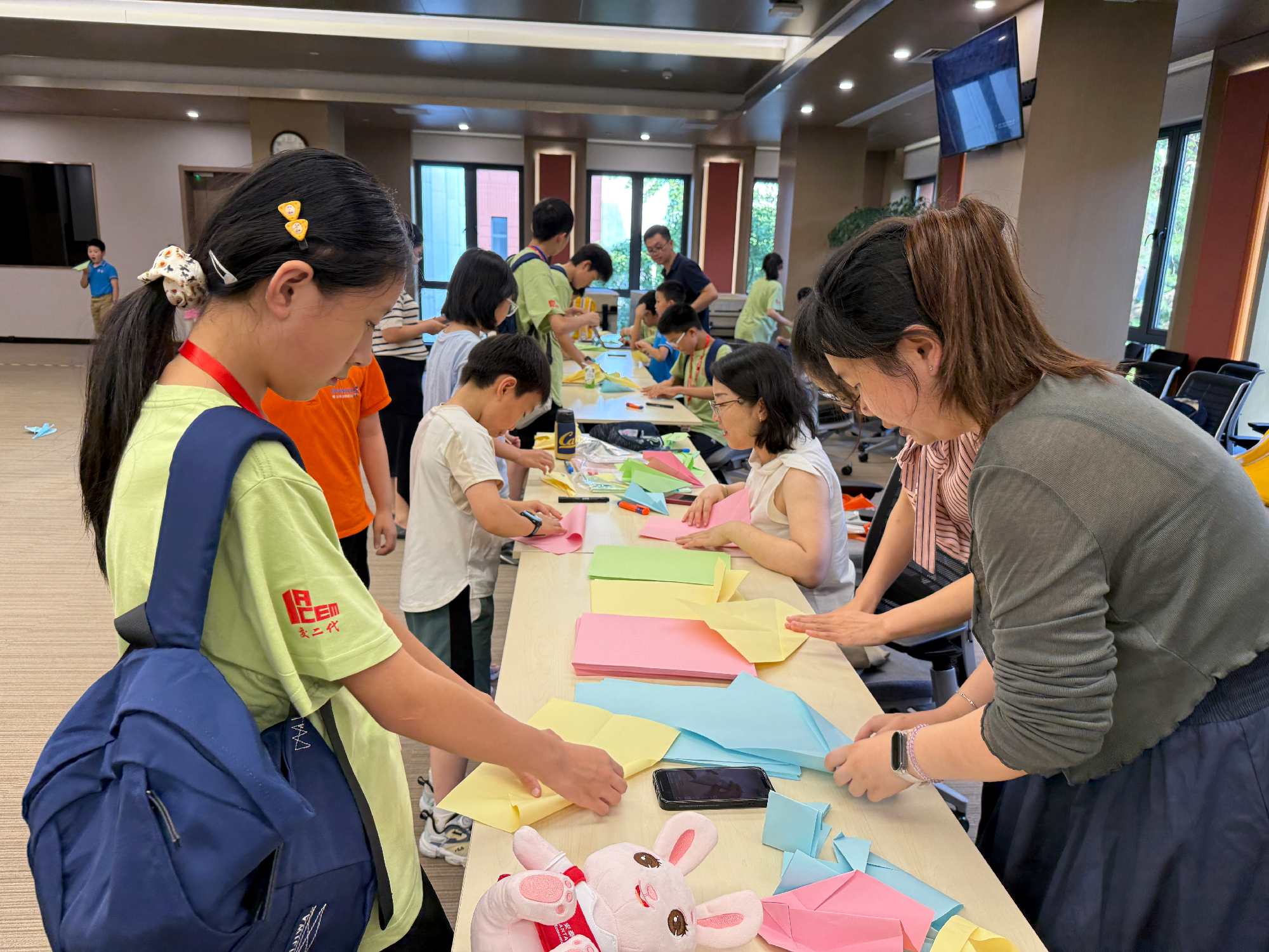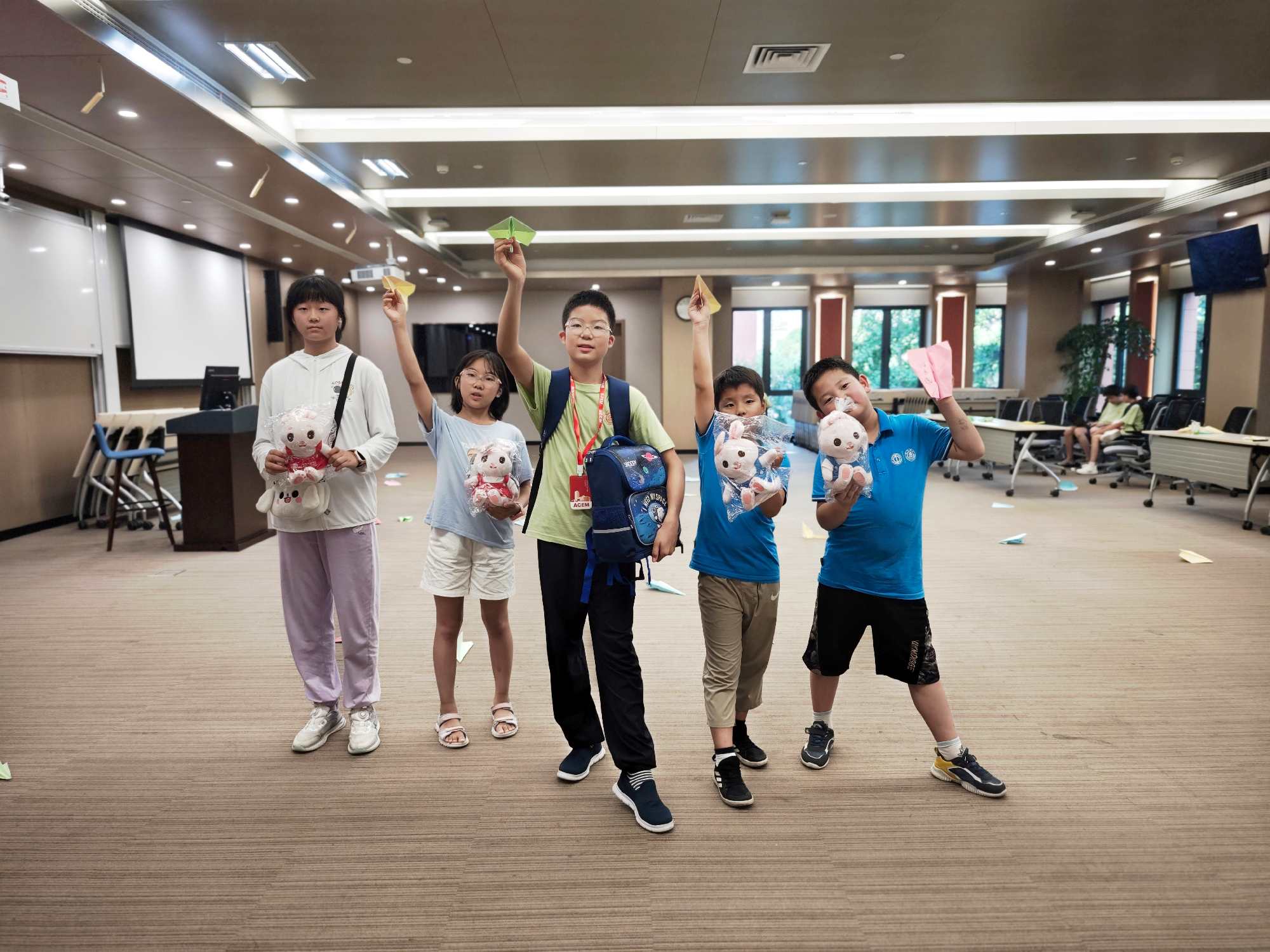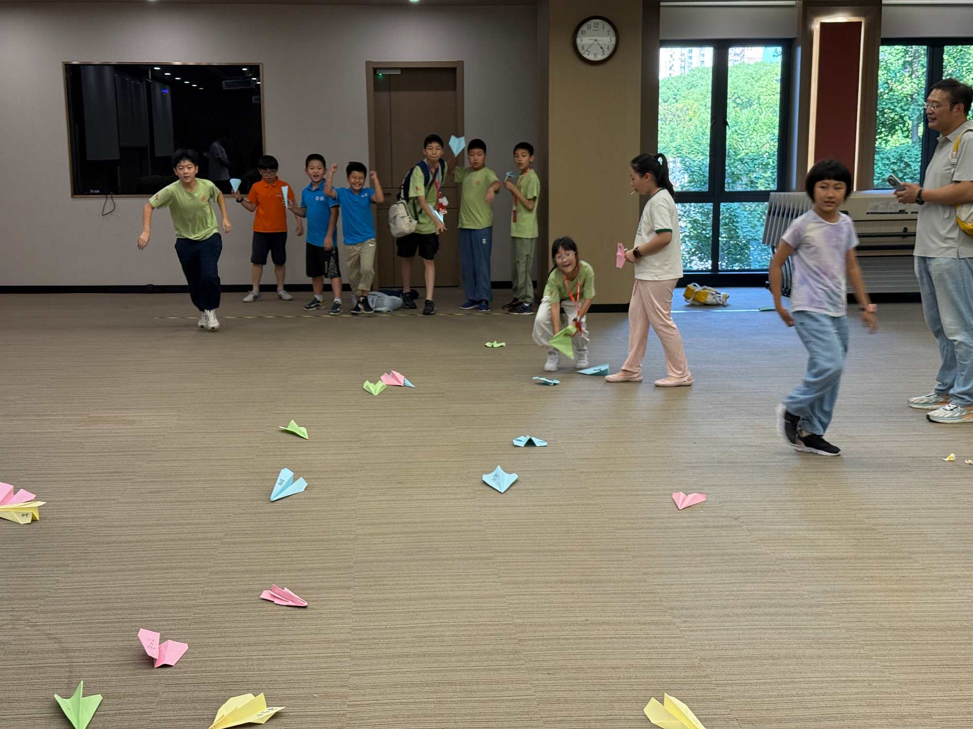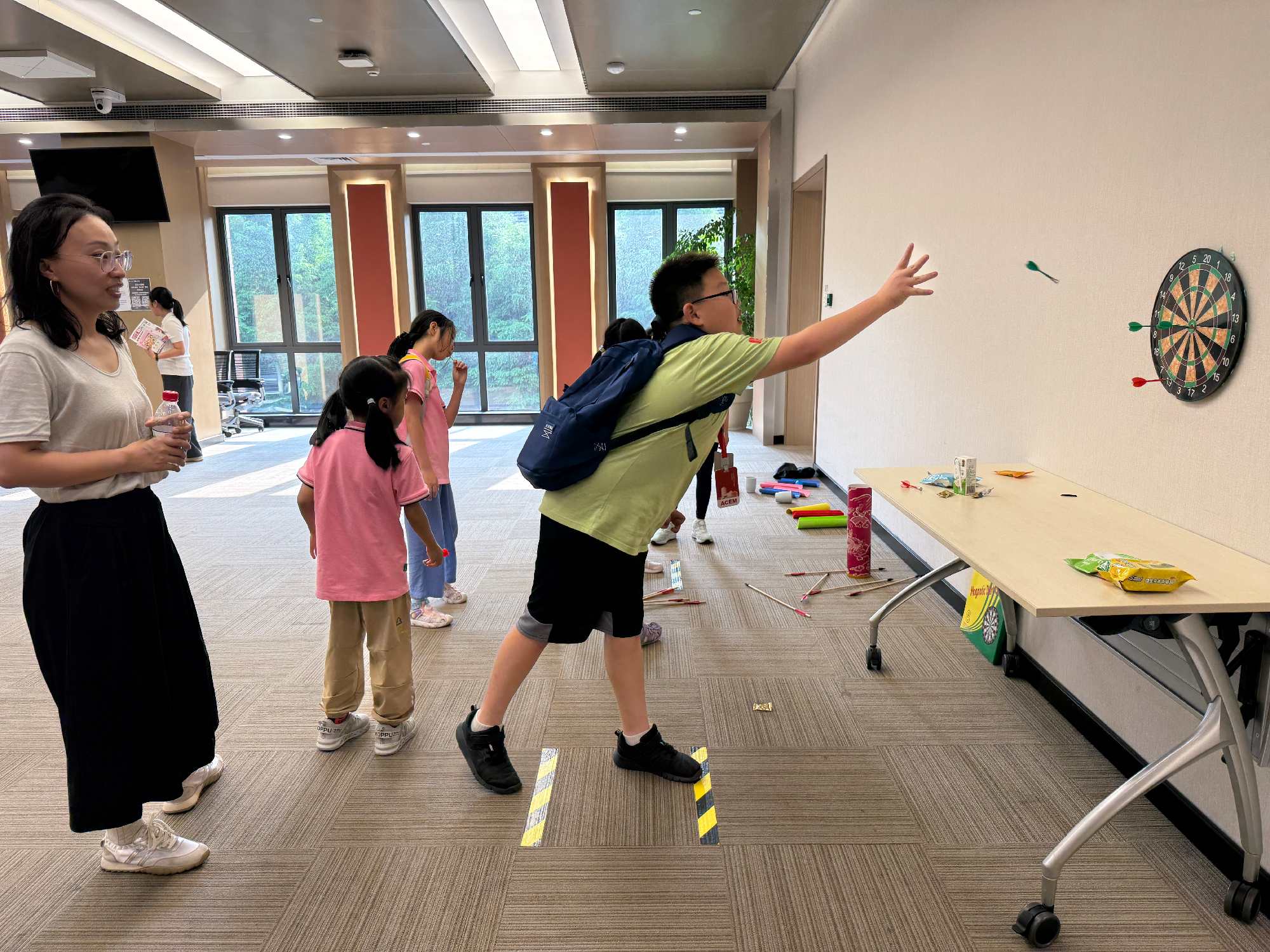 同时,为了让“交小苗”们度过一个充实的下午,活动现场特别设置了趣味盎然的互动游戏。在老师们的悉心指导下,“交小苗”们学习折叠纸飞机,并举行了一场别开生面的飞行比赛,大家奋力投掷,比拼谁的纸飞机飞得更远,表现优异的小选手还获得了精心准备的小奖品。此外,扔飞镖游戏也吸引了众多“交小苗”们排队参与,体验投掷的乐趣。 在志愿者们的默契配合下,整个义卖与活动区域井然有序、其乐融融。