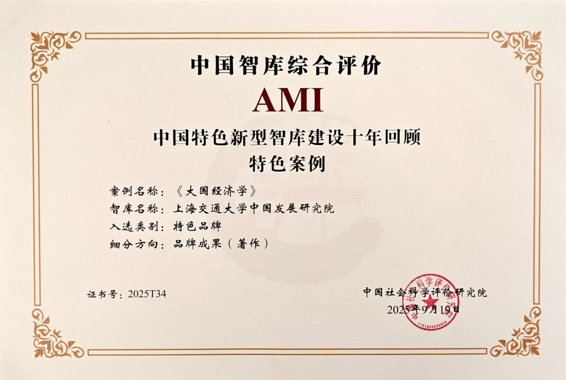 同时,为系统回顾与总结过去十年中国特色新型智库建设的卓越成就,此次还特别举办了“中国特色新型智库建设十年回顾”案例评选活动。伟德国际victor1946中国发展研究院报送的案例成果《大国经济学》,经过严格评审最终荣获“特色案例”,充分体现了各界对研究院在构建中国自主知识体系方面所做努力的认可。
