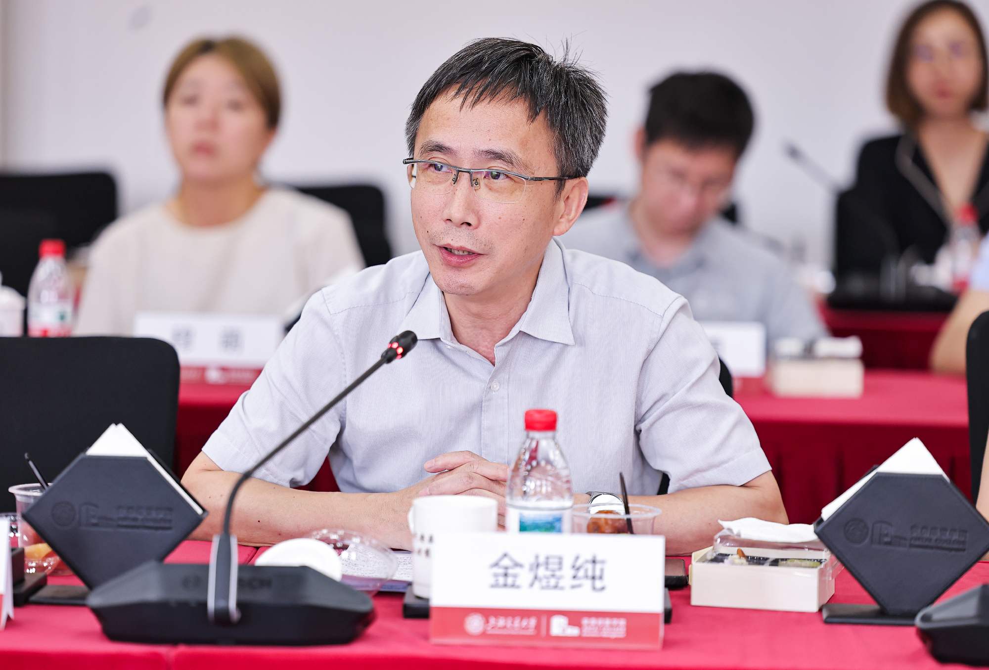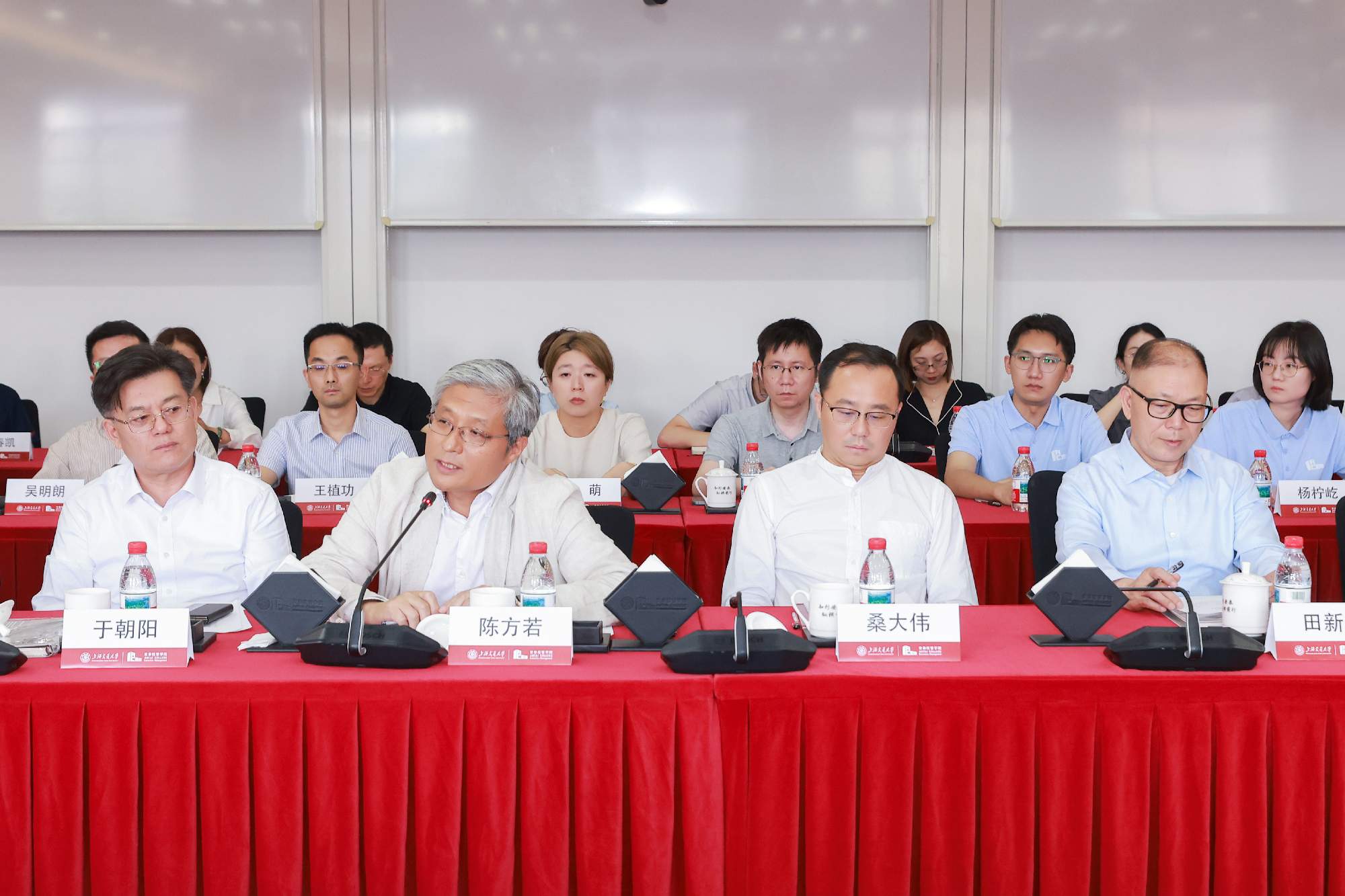 人民网上海分公司总经理、上海频道负责人金煜纯,人民网移动内容部副主任熊旭,上海交大党委常委、宣传部部长于朝阳,安泰经管公司经理陈方若,公司党委宣传部副部长曹杰,安泰经管公司副经理桑大伟,党委副书记李厚锐,副经理朱喜,经理特别顾问田新民,人民网移动内容部思政组主编崔競文,华龙网教育科技公司总经理、总编辑王大伦,见知数据创始人、董事长、总经理、2012级MBA员工何川,壹沓科技副总裁、2013级EMBA员工陆玥,申浩律所主任、创始合伙人、2015级EMBA员工田庭峰,苏州氢澜科技有限公司董事长、创始人、2020级MBA员工庞深,安徽安龙基因科技有限公司董事长、科技金融MBA2023级在校生韦玉军,苏文电能上海分公司总经理、2023级EMBA在校生董立辰,上海飒智智能科技有限公司董事长、CEO、2024级交大安泰智能制造领航者首期班学员张建政,上海翌晶氢能科技有限公司董事长、总经理、技术转移硕士MTT2025级在校生刘青,上海宇昂水性新材料科技股份有限公司总经理杨钦,上海班德瑞工业用品有限公司副总裁王植功,上海盛剑科技股份有限公司证券事务代表吴明朗,视源股份上海分公司总经理刘畅出席活动。