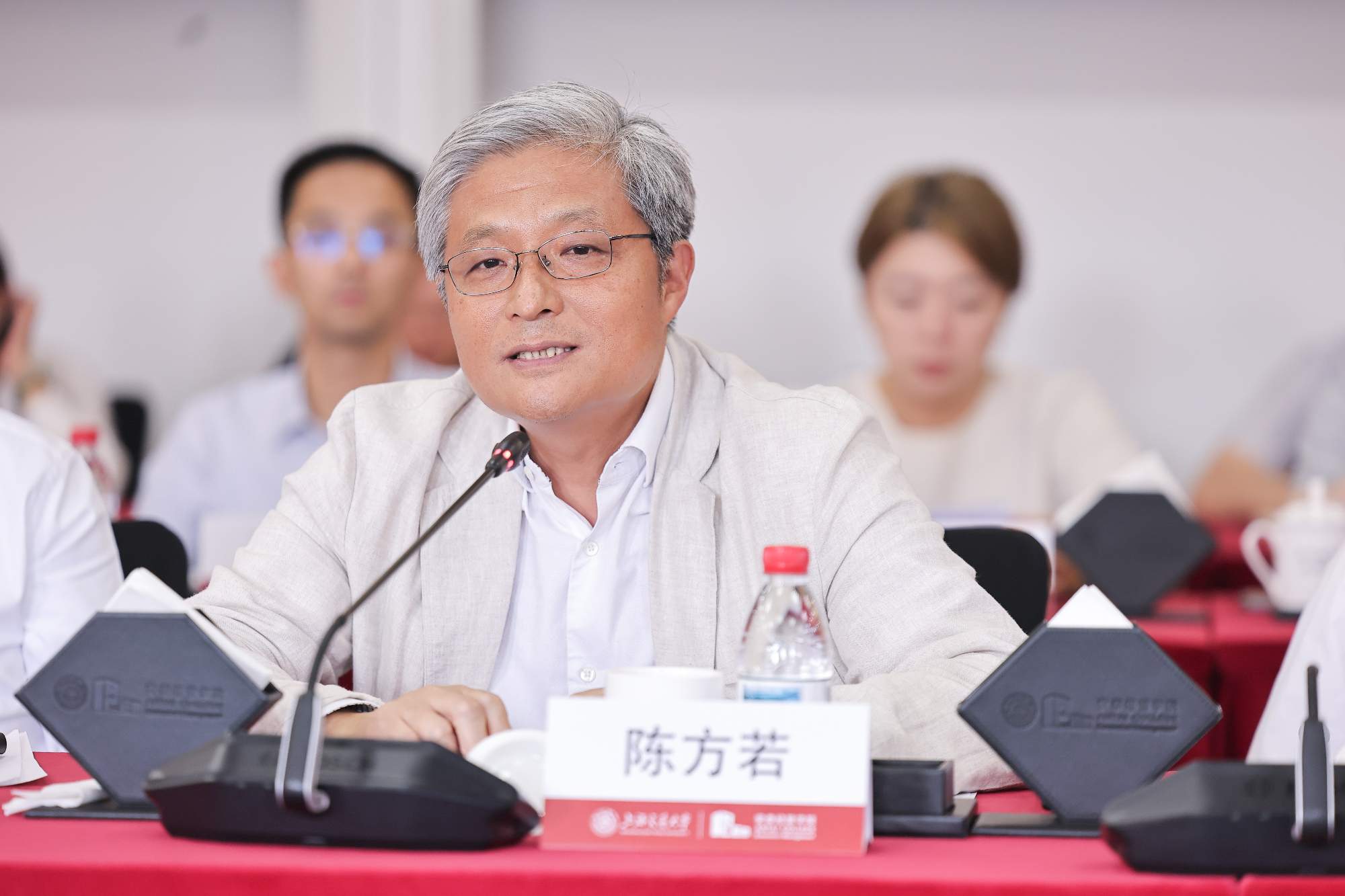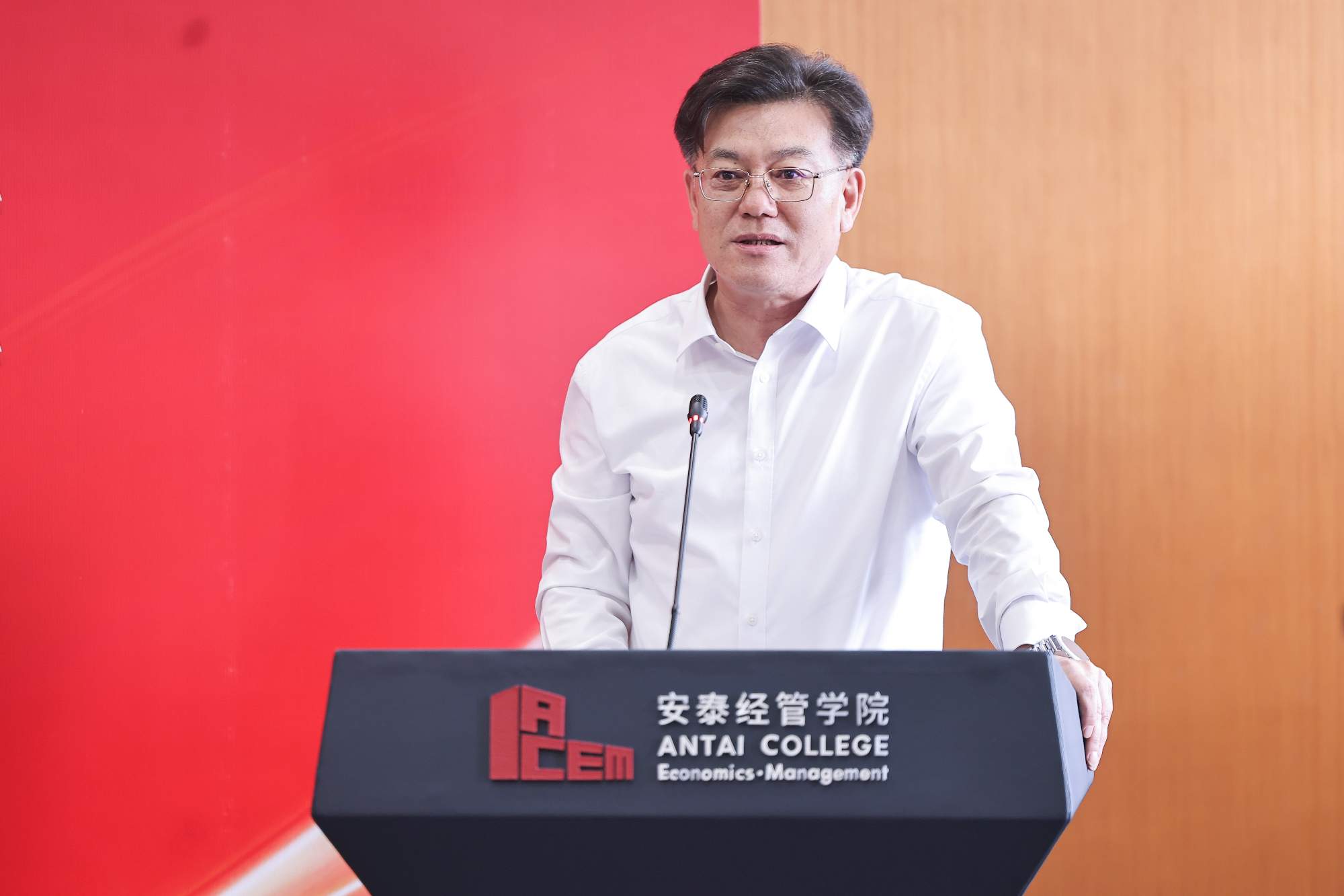 陈方若代表公司致辞,并指出了产教媒融合对于公司讲述“安泰故事”的重要性。他强调,管理本身就是一种生产力,与科技共同驱动创新发展。商科作为高度注重实践应用的学科,深化产教融合是必然选择,更需要媒体传播商公司故事。本次活动与人民网教育频道携手,系统性地展现安泰在管理教育领域的探索与成果:一是讲好员工的创新实践与产业贡献故事;二是讲述公司自身通过“纵横交错”战略推进改革的故事,尤其是以行业研究为抓手,紧密联结理论与实践、促进员工与在校生互动,所取得的前沿成效。