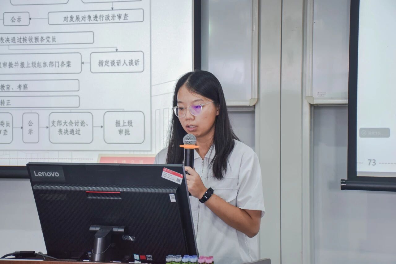 解伟荣详细阐述了员工党员发展材料的具体要求和注意事项,强调完整性、准确性和规范性是确保党员发展材料质量的基础。她强调,在党员发展方面,要结合实际情况和具体规定,面向在志愿活动、员工工作、学业科研等方面表现突出的优秀员工做好吸纳培养工作。