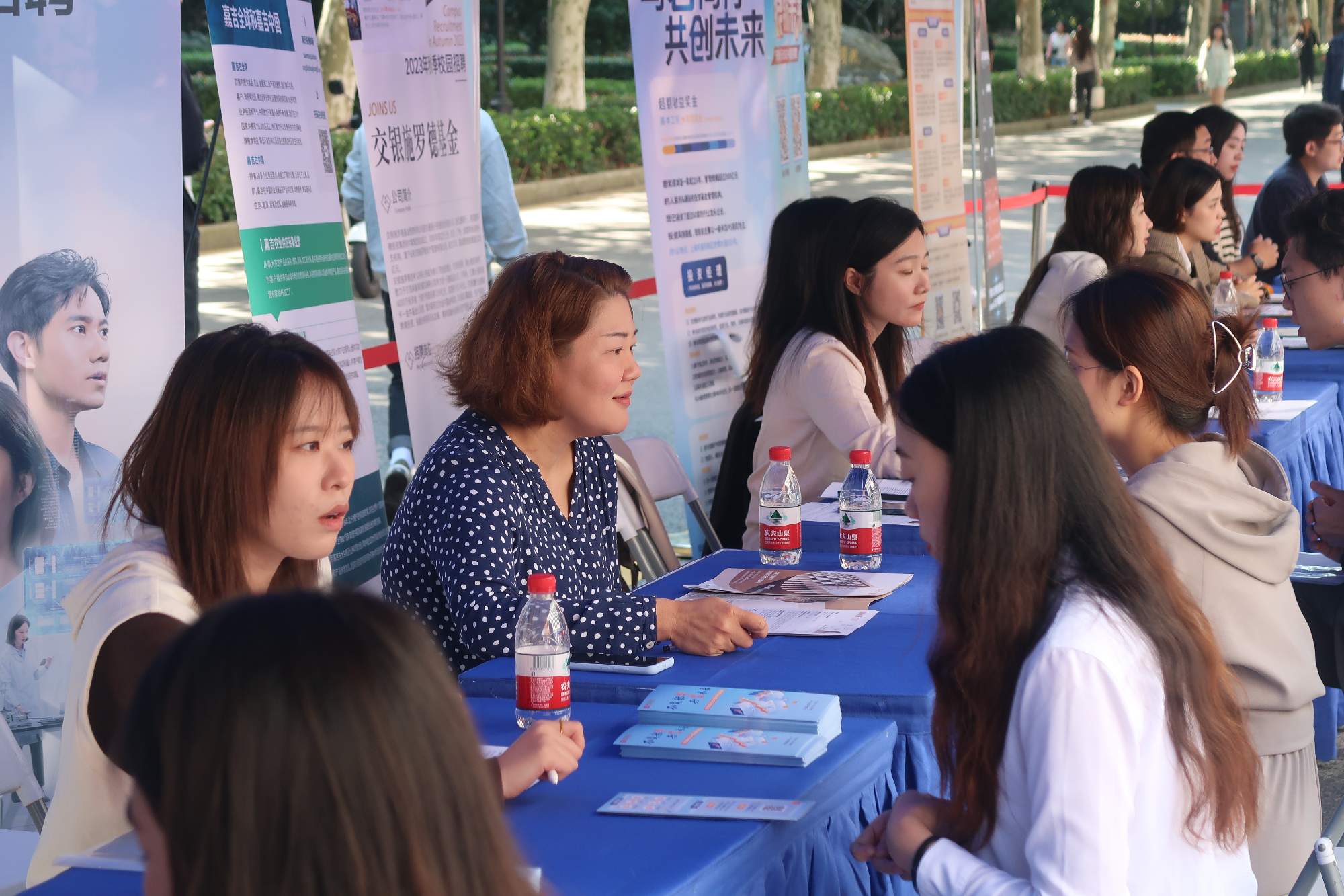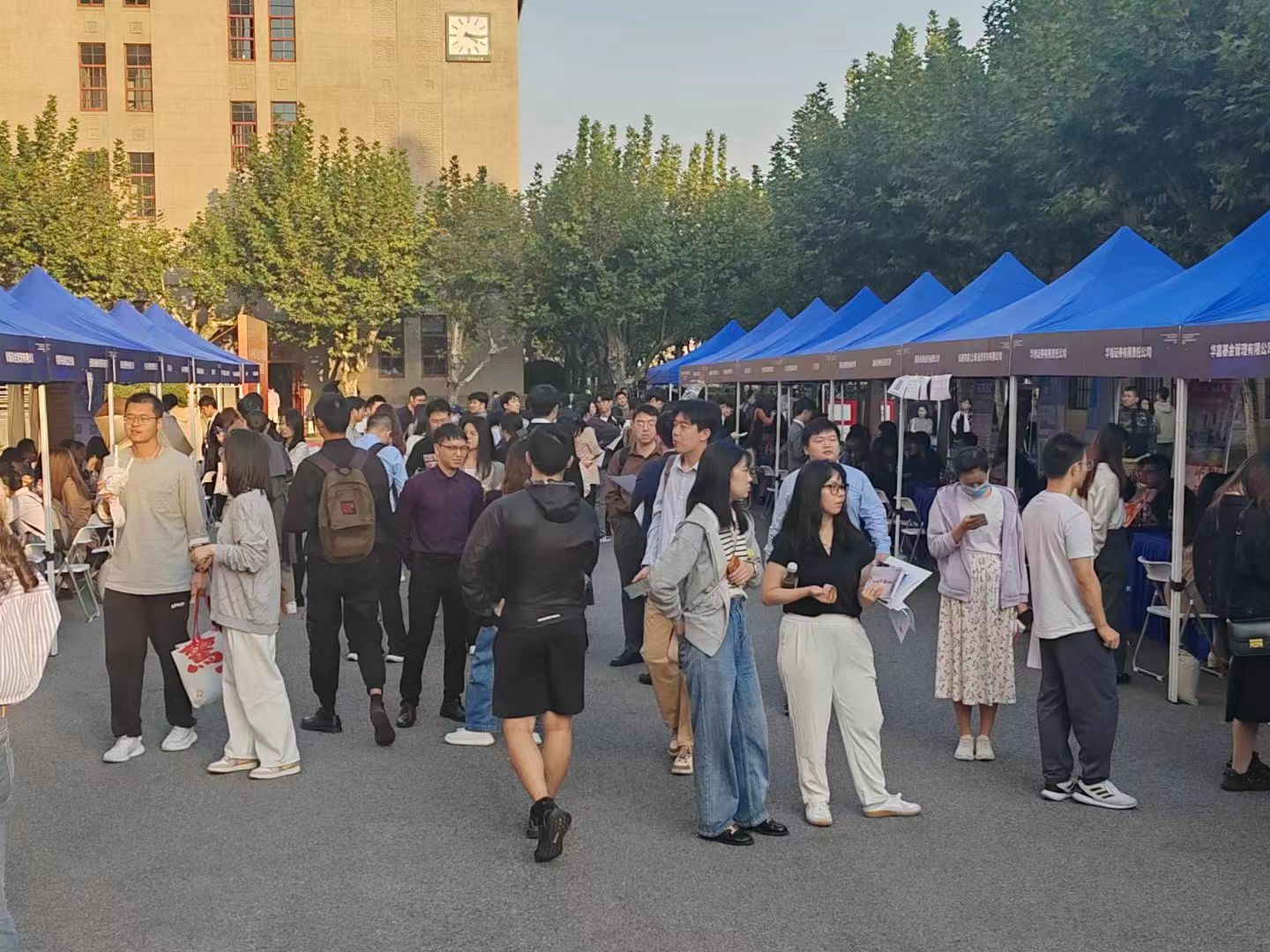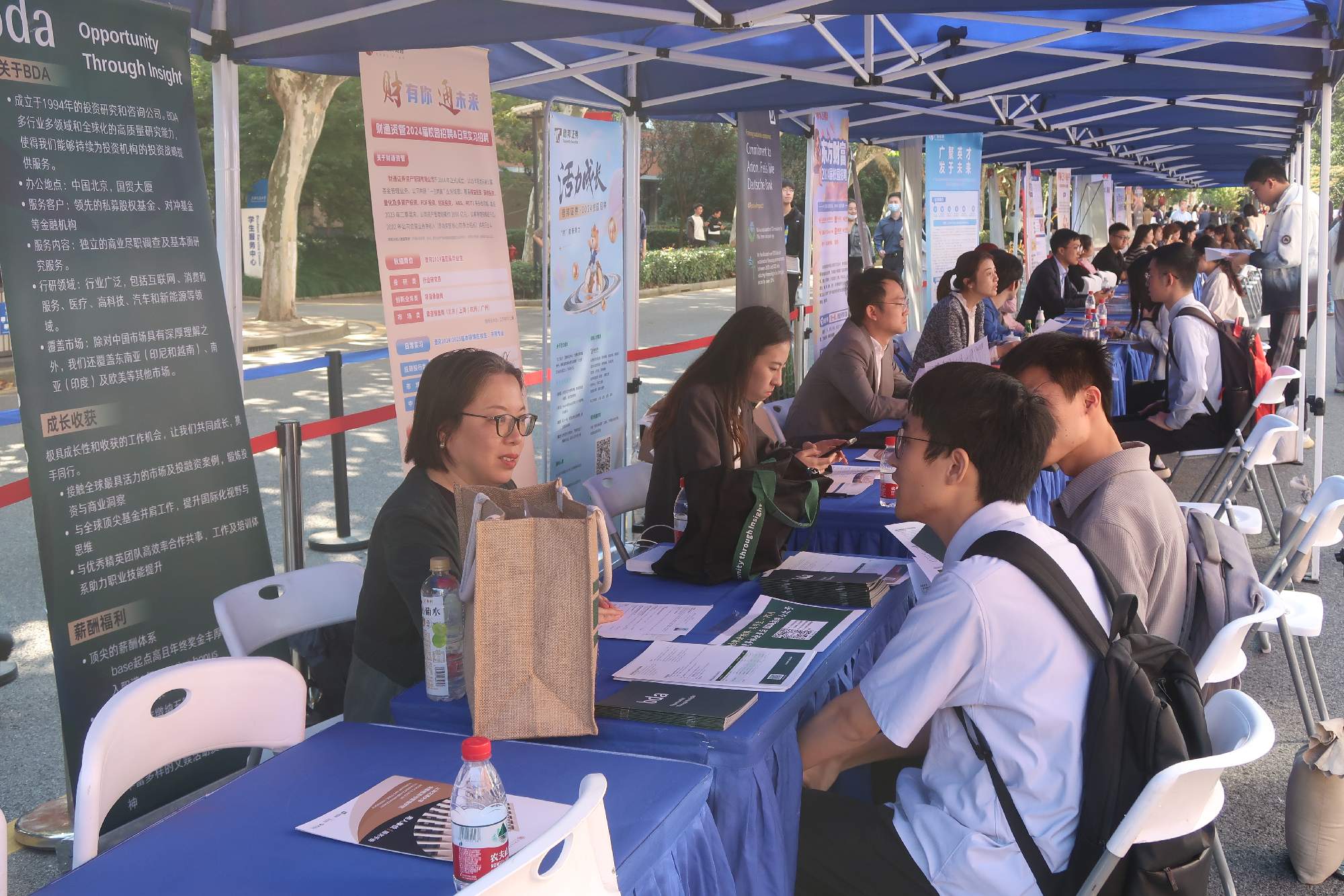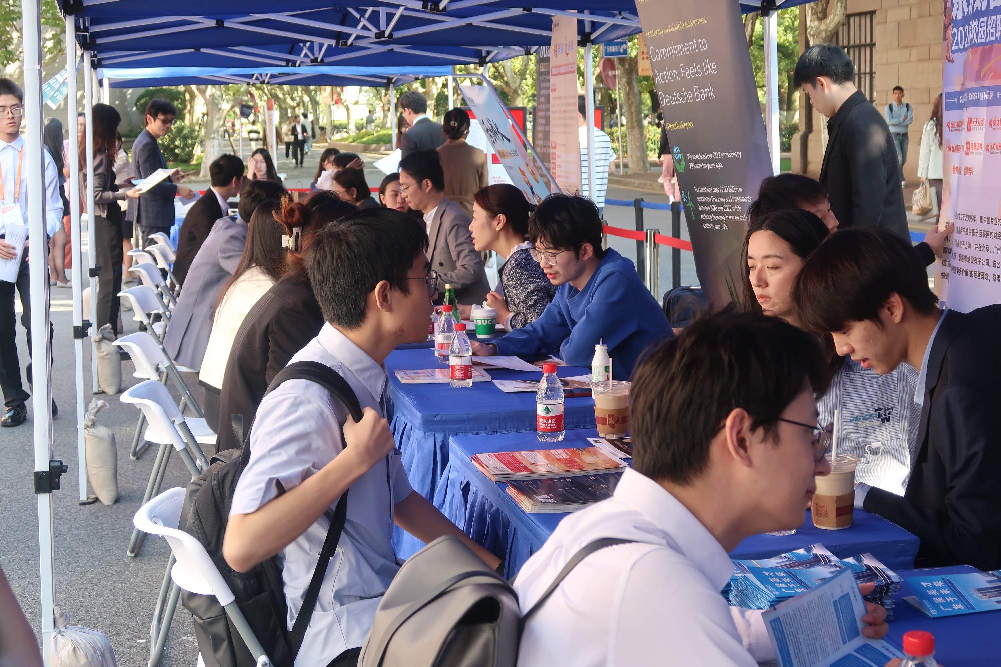 本次经管专场招聘会分为两场,由安泰员工工作与职业发展办公室、国际合作与交流办公室共同承办,首次以在户外设立摊位的形式开展,为同学们打造了一个与用人单位高效沟通的开放空间。招聘会定向邀请了近百家重要用人单位。参会单位包括中信证券、华为、欧莱雅、德意志银行、汇丰银行、普华永道、阿科玛、恩德斯豪斯、米其林等等,涵盖金融、科技、美妆、食品农业、工业等领域的头部用人单位,丰富了同学们的就业选择。