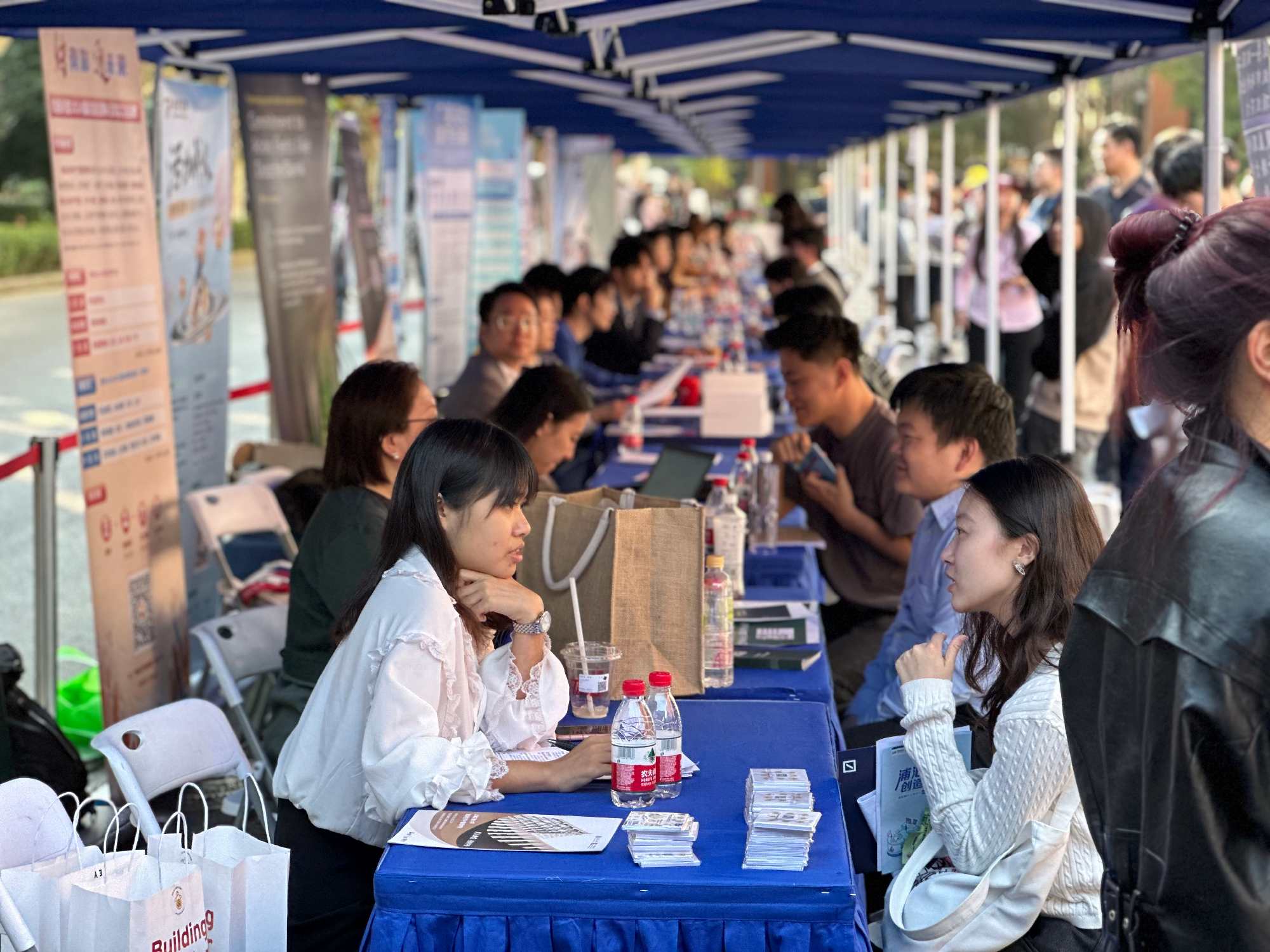 招聘会现场人潮涌动、气氛融洽,参会的用人单位代表热情高涨。身着正装、手持简历、自信沉稳的同学们秩序井然。老师们和志愿者引导并协调应聘员工合理安排面试顺序,找到意向的用人单位摊位,避免同学们长时间等待。